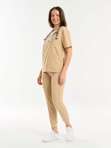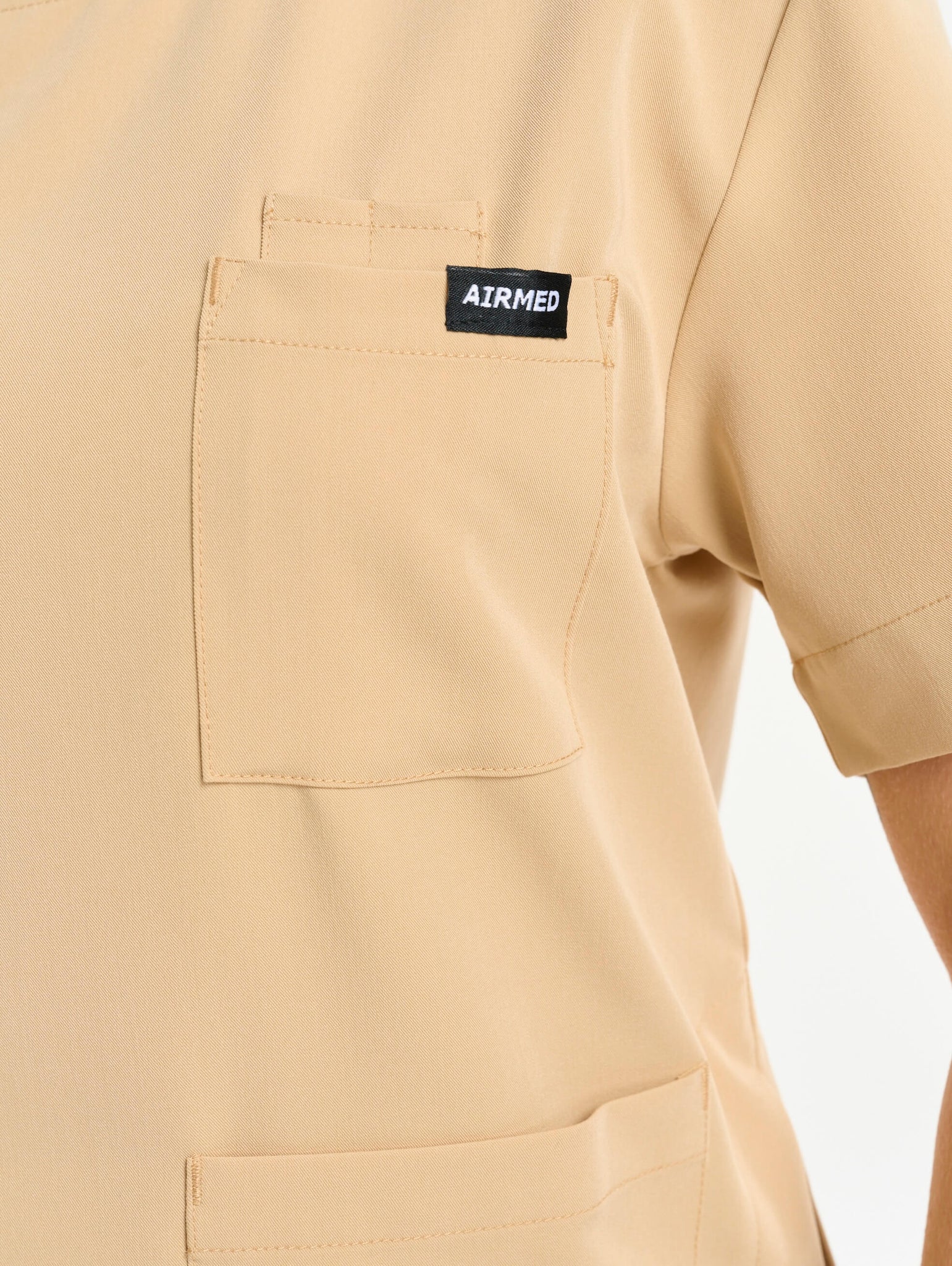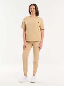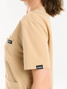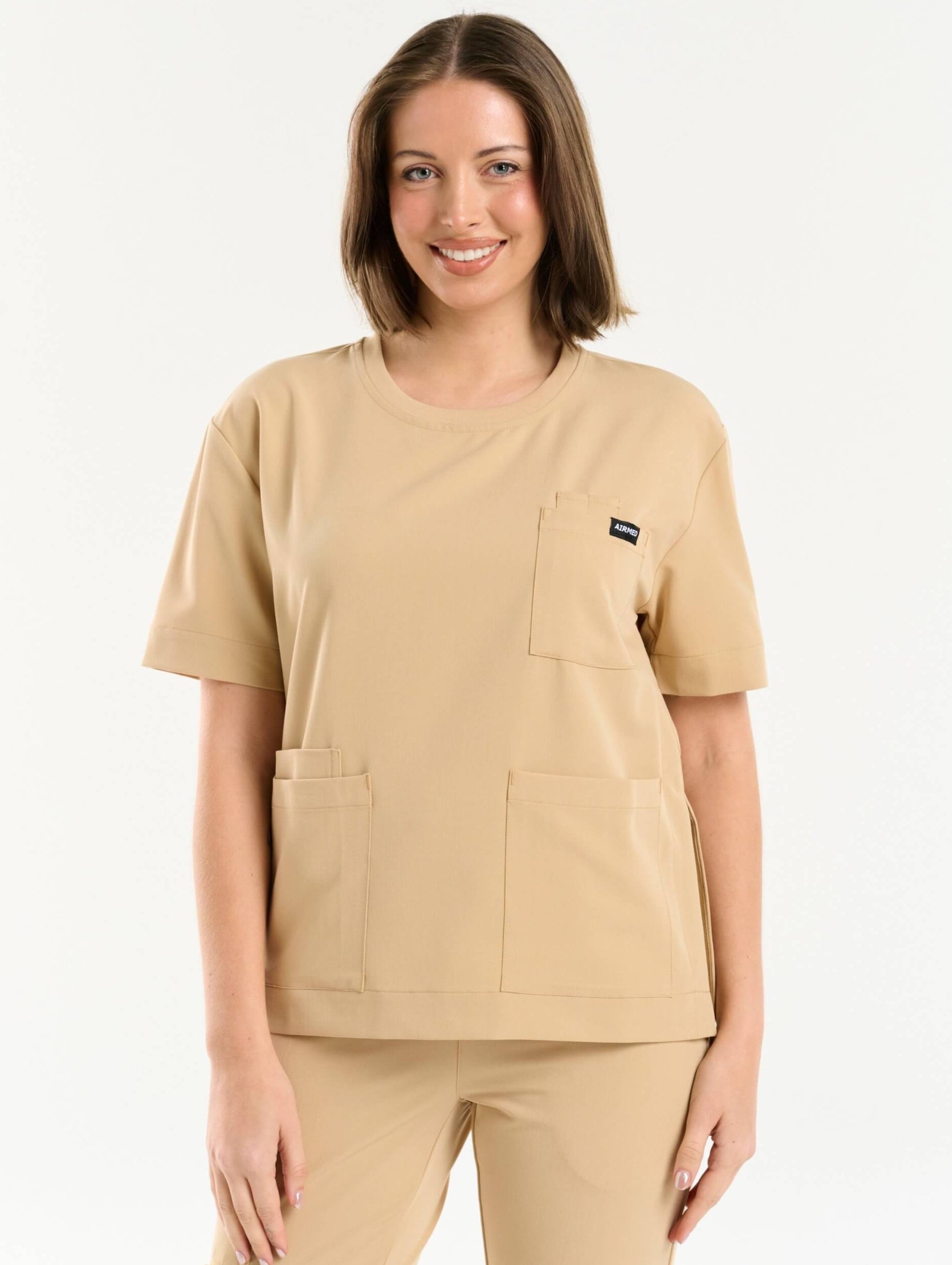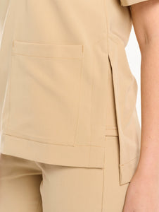 Total of 5 functional pockets; two deep apron patch pockets, one with an additional internal pocket, and a patch pocket on the left chest with an internal pen pocket. The Crew Neck Scrub Top has the most pockets out of our Essential range.