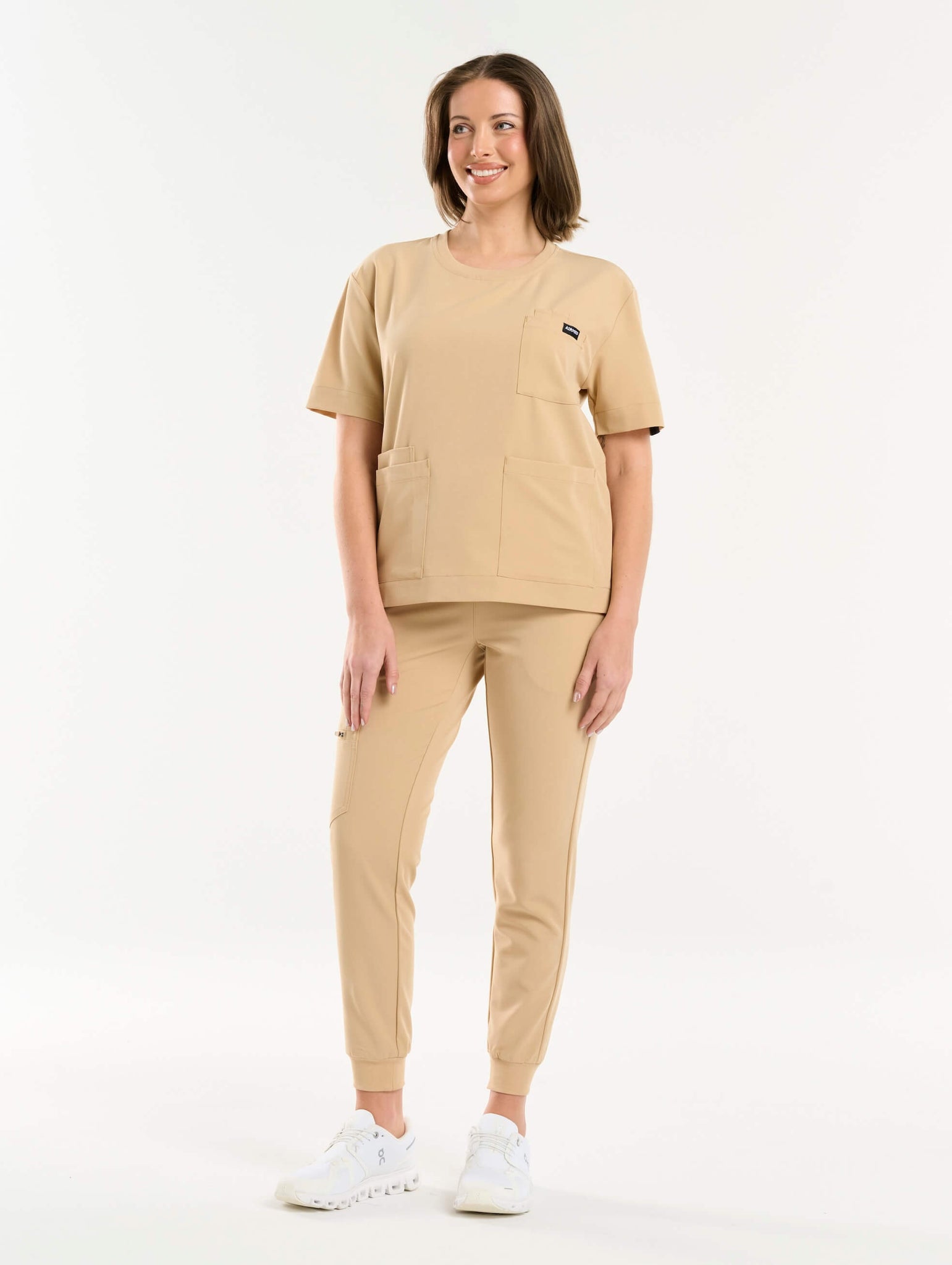 With a relaxed, unstructured back, drop-shoulder sleeves, and a high-coverage neckline, The Crew Neck Scrub Top delivers a roomy, comfortable fit