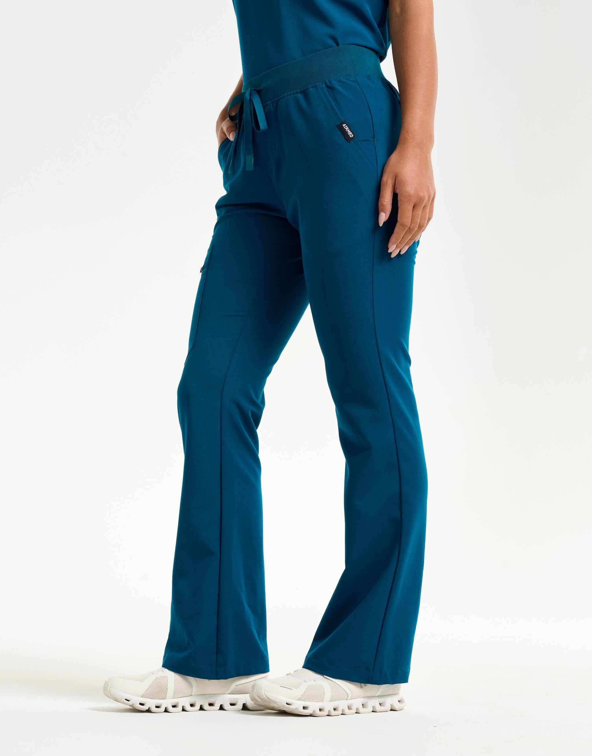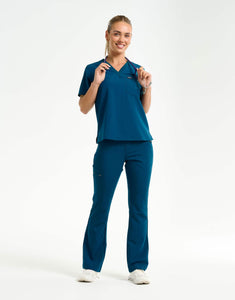 The modern classic, high waisted and flare leg pant that is the perfect pair for your essential work wardrobe. Made up of our soft proprietary blend with added SIL-FIBRE and the right amount of stretch and flare to keep you comfortable and stylish on and off shift.